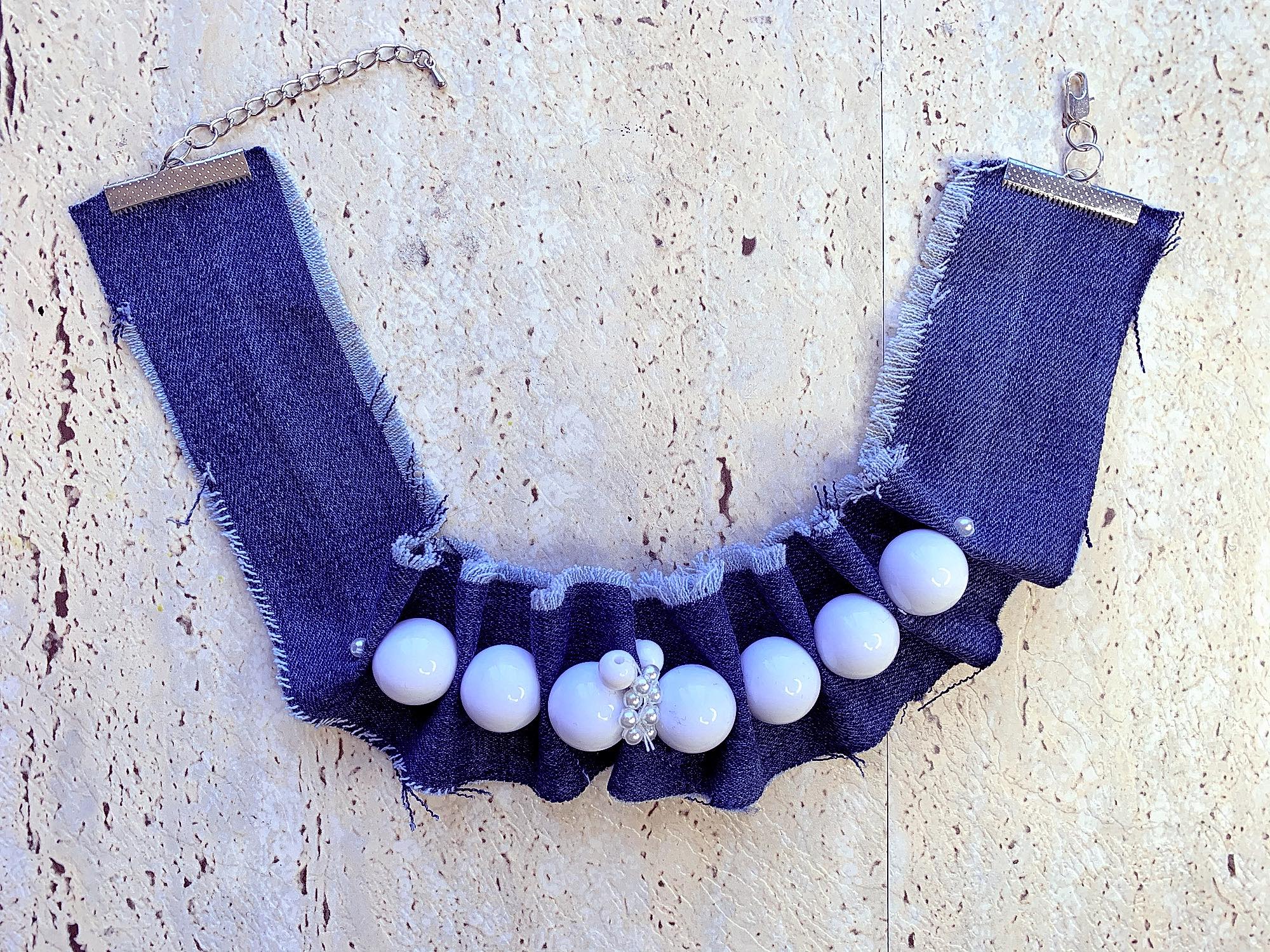 ‘The Denim’ Recycled Choker Necklace with Pearls